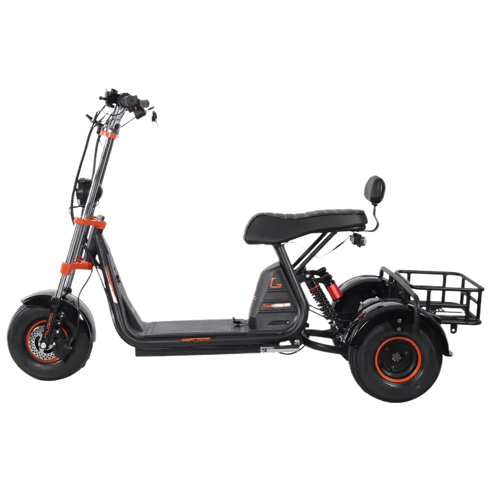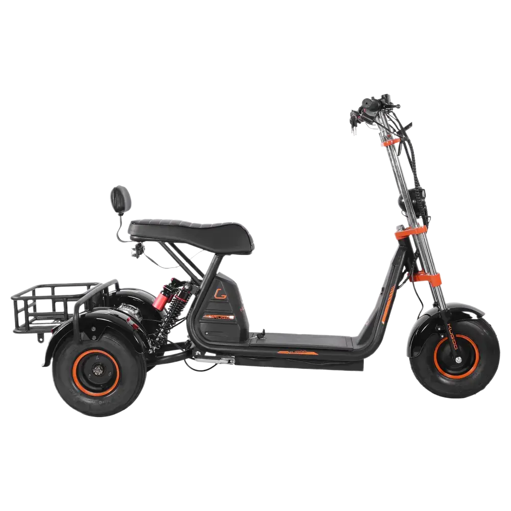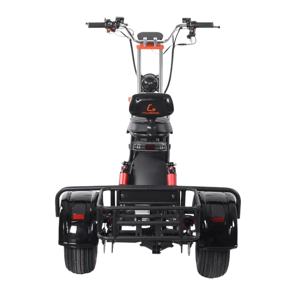 Kugoo C4 يمنحك قيادة آمنة ومريحة على كل طريق. تصميم ثلاثي العجلات يوفّر ثباتًا عاليًا ومقعدًا مريحًا مناسب للرحلات اليومية أو الاستخدام التجاري الخفيف.